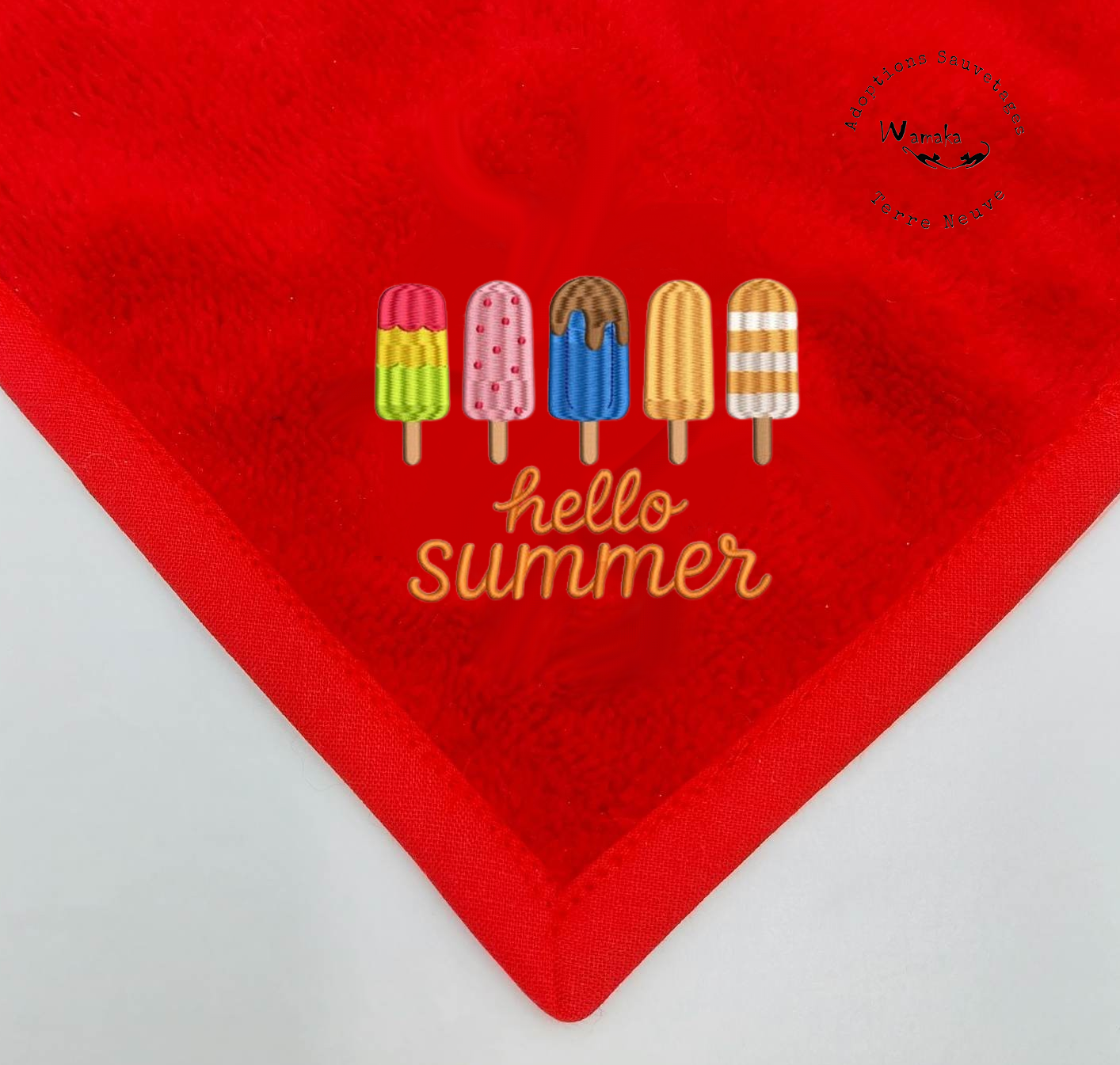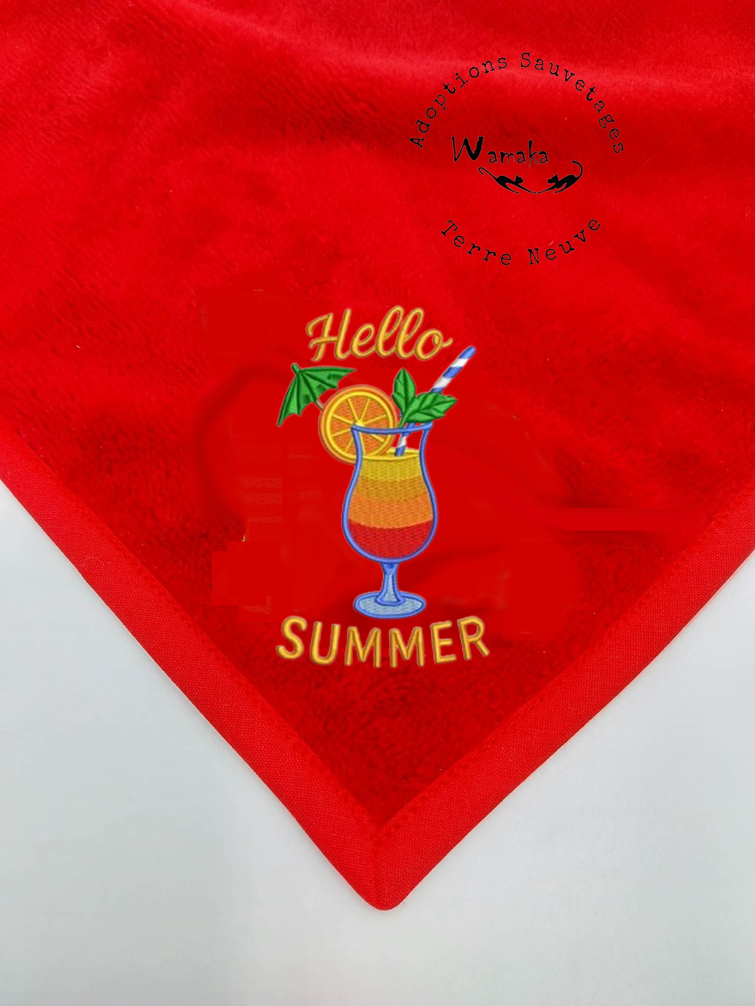 Ce joli drap de bain en éponge bambou vous accompagnera avec plaisir cet été dans vos activitées. Il est réalisé dans une éponge de qualité, avec un biais en coton. Pour la collection été, des broderies adaptées à la farniente et aux vacances avec des motifs originaux et flashis