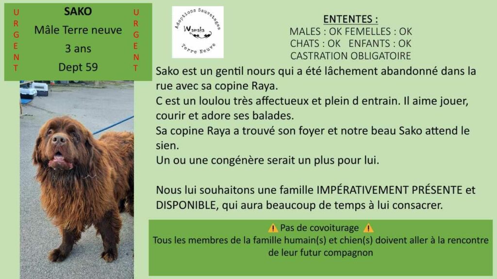 Sako est un gentil nours qui a été lâchement abandonné dans la rue avec sa copine Raya.